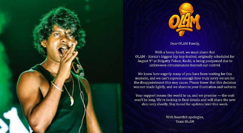 ഒളിവിൽ കഴിയുന്ന റാപ്പർ വേടന്റെ സംഗീത പരിപാടി മാറ്റിവച്ചു. കൊച്ചിയിലെ ബോൾഗാട്ടി പാലസിലെ ഓളം ലൈവ് എന്ന പരിപാടിയാണ് മാറ്റിവച്ചത്. ഇത് ശനിയാഴ്ചയായിരുന്നു നടക്കേണ്ടിയിരുന്നത്. പരിപാടി മറ്റൊരു ദിവസം നടത്തുമെന്ന് സംഘാടകർ അറിയിച്ചിട്ടുണ്ട്. യുവ ഡോക്ടർ പരാതി നൽകിയതിനെ തുടർന്നാണ് വേടനെതിരെ ബലാത്സംഗ കേസ് രജിസ്റ്റർ ചെയ്തത്. വേടൻ പരിപാടിക്കെത്തിയാൽ അറസ്റ്റ് ചെയ്യാനായിരുന്നു പൊലീസിന്റെ തീരുമാനം.